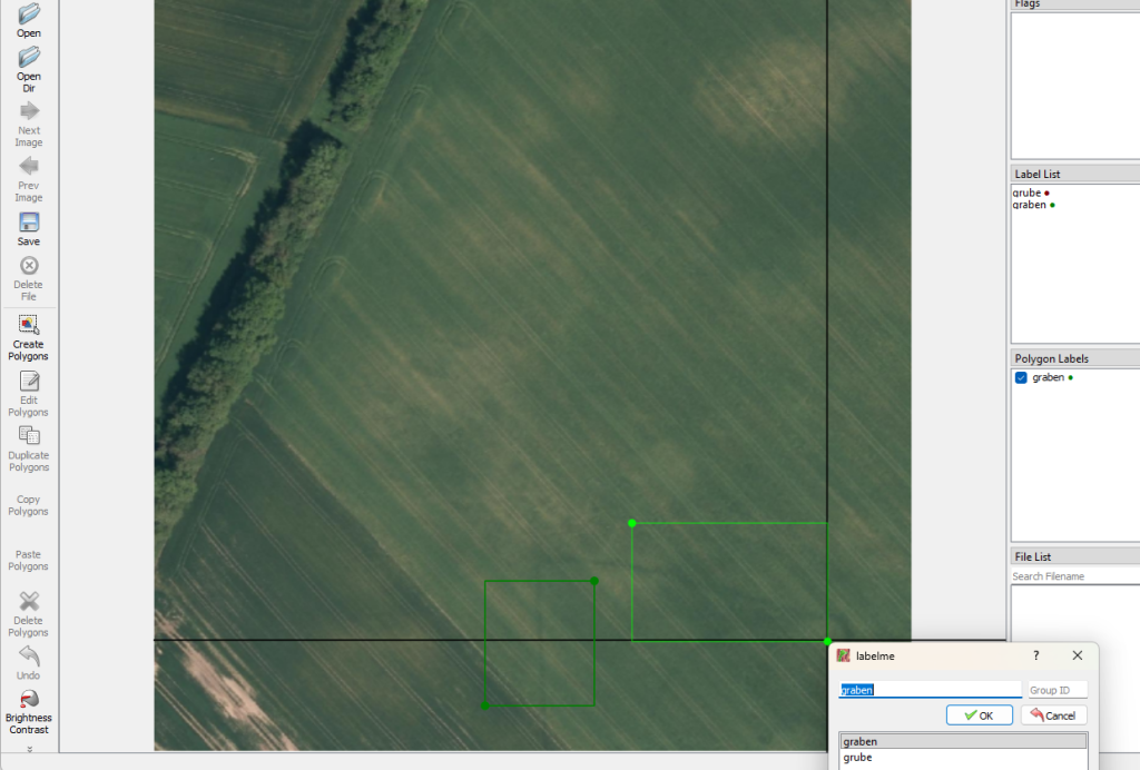 Tja, aber bevor es soweit ist, müssen noch in sehr sehr sehr aufwändiger Arbeit (ca. 2 Monate) mindestens 300 Bilder händisch und visuell herausgesucht werden, die auffällige Grabenspuren aufweisen (bislang: 8 Bilder gefunden, Aufwand: Ca. 5 Stunden). Diese werden dann über eine Software „annotiert“, damit Yolo/Pytorch auch weiß, wonach es überhaupt suchen soll. Das ist, gelinde gesagt, eine ziemliche „Mistarbeit“, muss aber leider sein…(ohne Fleiß kein Preis)…