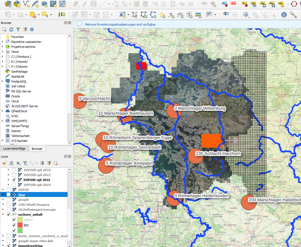Ein recht geeignetetes Trainingslager (hoffentlich) die die Datensphäre zwischen Ostercappeln und Bohme. Hier lassen sich schon mit bloßem Auge eine Menge Luftbild-Spuren erkennen. KI wird dort sicherlich einiges zu Tage bringen.