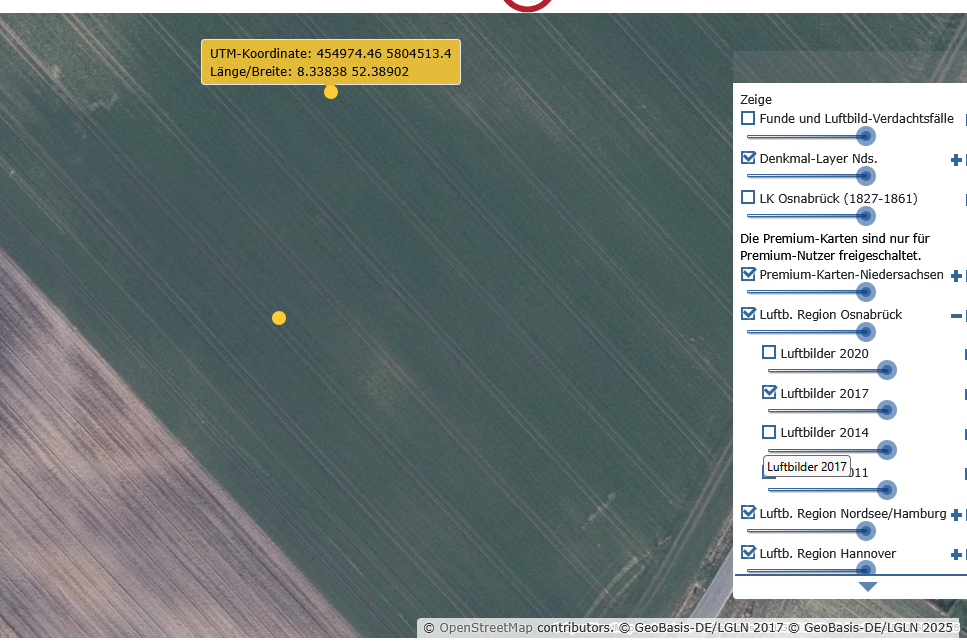 Unterstützende Luftbildarchäologie sowie Vorbereitungskarten für Sondengänger (Niedersachsen)