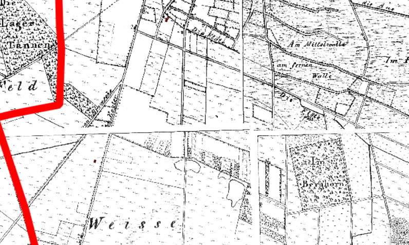 - Gaußsche Landesaufnahme LK Osnabrück (1827 bis 1861) („Topographische Karte der Landdrostei Osnabrück“), © GeoBasis-DE/LGLN 2025, verändert durch gGmbH Behncke Umweltschutz und Lebenshilfe 2025