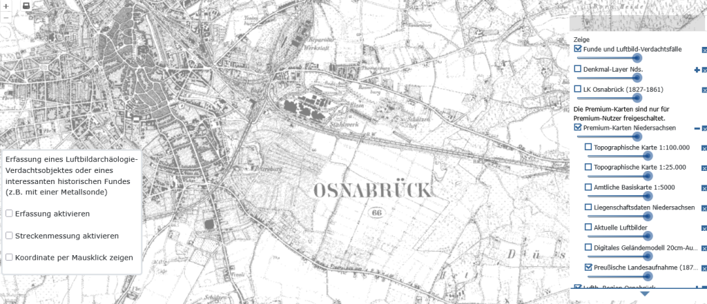 Mit dem Premium-Zugang hast Du die Möglichkeit, folgende Kartenebenen von Niedersachsen in der Desktop-Kartenanwendung https://charta-thesauri.de/geodaten/ zu nutzen: