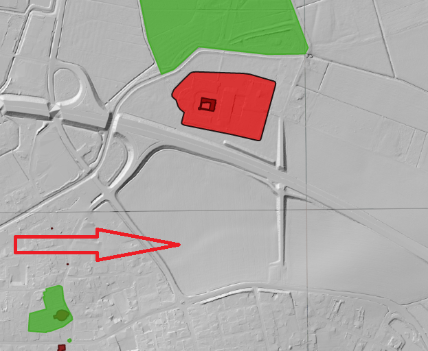 Nun kommen die „Premium-Layer“ ins Spiel: Das digitale Geländemodell in 20cm-Auflösung (pro Pixel) (Quelle: GeoBasis-DE/LGLN 2025) lässt hier Höhenunterschiede erahnen: