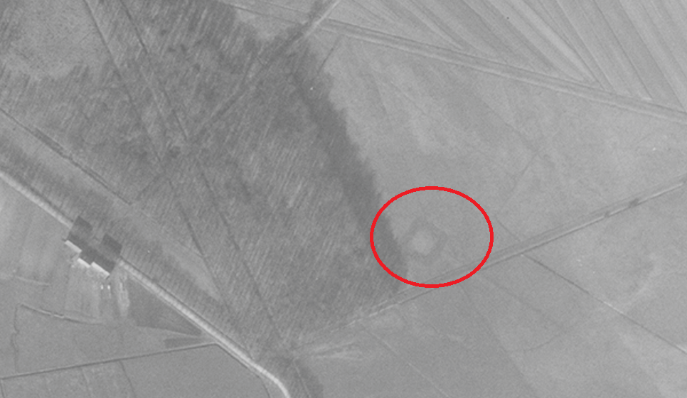 Ein extern erworbenes Luftbild (nicht im Portal von „Charta thesauri“ integriert) der Briten aus dem Jahr 1945 (Quelle: Archiv der „National Collection of Aerial Photography (NCAP), https://www.ncap.org/) offenbart erfrischend klar Folgendes: