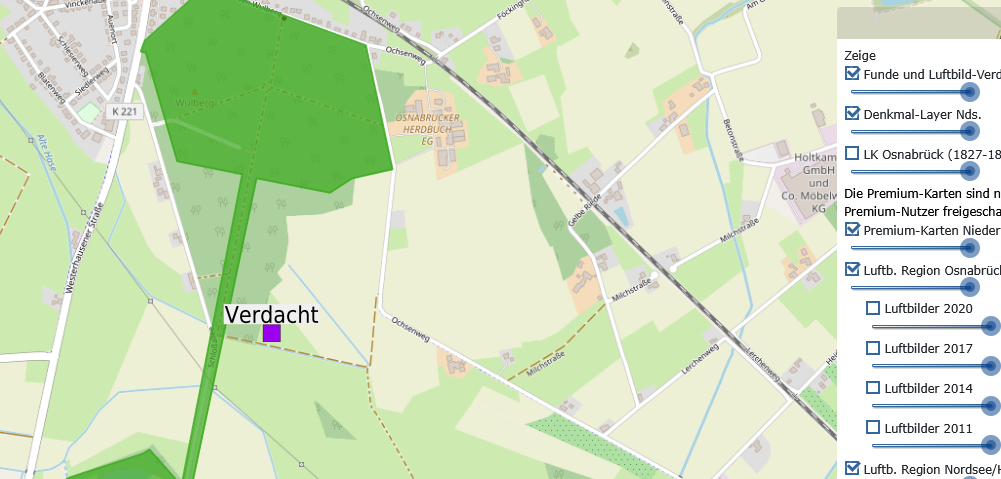 Entsprechender Eintrag wurde somit an den Kreisarchäologen des Landkreis Osnabrück gemeldet. Als Rückmeldung kam die Nachricht, dass diese Erhöhung bereits 1990 einem Mitarbeiter des Landesamts für Denkmalpflege aufgefallen sei und es dort 1993 eine Sondenbegehung gegeben habe. Luftbildaufnahmen zu diesem Objekt seien bislang nicht bekannt gewesen. Vermutet würde, dass es sich hier um eine historische „Motte“ handelt (https://de.wikipedia.org/wiki/Motte_(Burg)). Ein solcher Dialog ist ein hohes Gut, die Vermittlung solcher Informationen hat einen besonderen kulturhistorischen Wert.